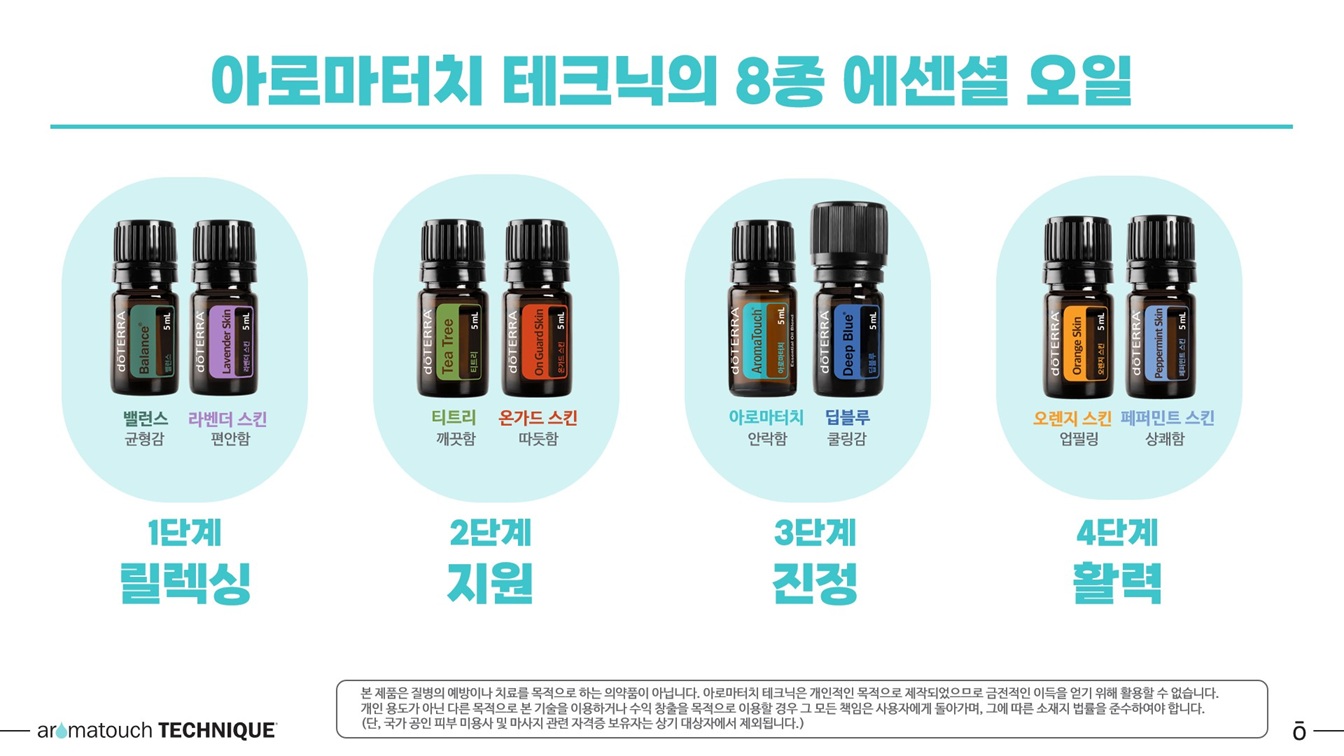 '아로마'와 '터치'가 만나 선사하는 강력한 시너지 효과 때문입니다. 단순한 오일 사용을 넘어,