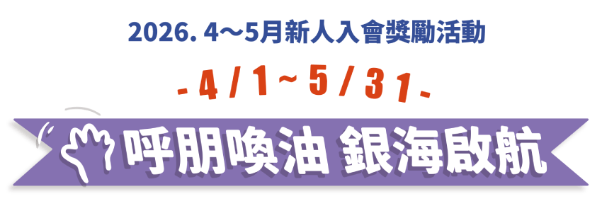 【2026. 4~5月新人入會獎勵活動】 呼朋喚油 銀海啟航