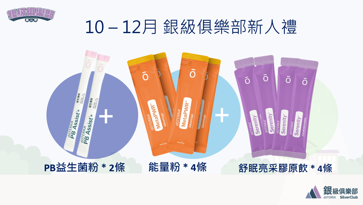 - 所有新加入的健康倡導者或愛用會員,須在該活動結束後三天內,到台灣銀級俱樂部活動官網 2025 銀級俱樂部,歡迎參加 | dōTERRA 美商多特瑞精油 完成新人資料登記。